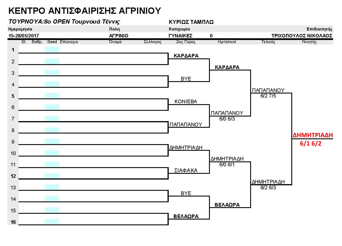 8ο Open Tennis Tournament - Mάιος 2017